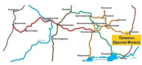 Увага до Провальського степу особливо зростає з кінця XIX століття, коли через нього у 1876—1879 роках із заходу на схід була прокладена так звана Донецька залізнична кам'яновугільна дорога «Дебальцеве — Звєрево» із станцією Провалля (від 1920 року перейменована в станцію Красна Могила). Залізниця не лише дала вихід продукції розташованого тут конезаводу на всеросійський ринок, але й слугувала своєрідними воротами для іноземного капіталу. Численних представників англійських, французьких, бельгійських та інших акціонерних об'єднань приваблює в Провальський степ вугілля, поклади якого були відкриті тут фахівцями Луганського чавуноливарного заводу майже за століття (1797—1806 роках) до спорудження залізниці.