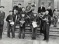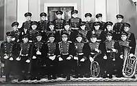 Оркестр 427-ї ОМЧП ЦО СРСР в приміщенні Верховної Ради УРСР. Сергій Войтюк третій справа у верхньому ряду. Київ (1968)