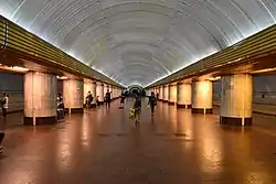 Тип станції — колонна трисклепінна глибокого закладення. Довжина посадкових платформ — 102 м.