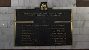 Пам'ятна дошка, що встановлена на торці станції