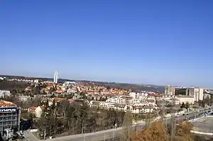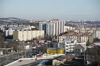Знаходиться між кварталами Лібоц, Дейвіце, Велеславин, Небушіце та Стржешовіце.