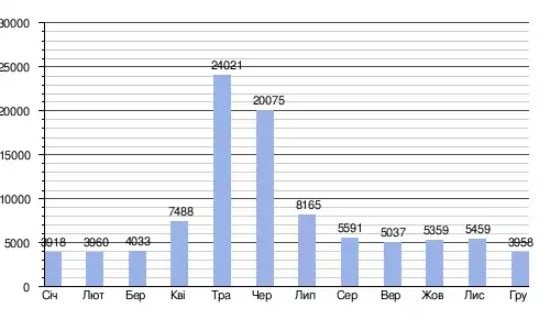 Середні щомісячні витрати води (в м³/с), визначені гідрологічною станцією Волгоград (за період 1879—1984 рр.)[7] |