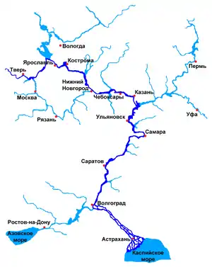 | Притоки: | Ветлуга, Кама, Ока, Сура, Бездна, Унжа, Самара, Казанка, Свіяга, Керженець, Кострома, Которосльd, Шексна, Молога, Kashinkad, Nerld, Medveditsad, Дубна, Тверця, Вазуза, Селіжаровка, Uzolad, Gnilukhad, Nizhnyaya Staritsad, Bolshaya Mazad, Vetlyanad, Trestyankad, Parashad, Kitmard, Sundyrkad, Cheremoshnyad, Dragochad, Nuzhenkad, Vezlomad, Karzhayd, Rzhavtsad, Sergovkad, Ulyustd, Urdomad, Ardad, Shigolostd, Kmelyovkad, Vatomad, Chyornaya Mazad, Edomad, Lutoshad, Ovrag Volovskyd, Pyrad, Iruzhad, Malaya Yungad, Kubrad, Zheleznitsad, Bereznyakd, Zhuzhlad, Sundyrd, Korozhechnad, Kholokholnyad, Izbrizhkad, Zhabnyad, Khalzovkad, Цивіль, Волго-Донський канал, Sumkad, Tmad, Велика Кокшага, Kudmad, Bolshoy Karamand, Чапаєвка, Merad, Nyomdad, Tsaritsad, Alferovkad, Boynyad, Bolshaya Dubenkad, Bolshaya Koshad, Bolshaya Lochad, Velikayad, Volnushkad, Volozhkad, Doroguchad, Dunkad, Dyorzhad, Elshankad, Zhukopad, Ingad, Itomlyad, It riverd, Karanovskayad, Kokshad, Kolokshad, Kormad, Kochad, Kudd, Mokraya Mechetkad, Levinkad, Lindad, Malaya Dubenkad, Malaya Itomlyad, Malaya Kolokshad, Malaya Koshad, Mezhurkad, Mlingad, Nora, Nyuzhmad, Nyuzhmad, Orchad, Orshad, Pesochnyad, Pochaynad, Rakitnyad, Rakhmad, Serebryankad, Sishkad, Solodomnyad, Starchonkad, Sumkad, Sundovikd, Sukhaya Mechetkad, Kholynkad, Cheboksarkad, Cheryomukhad, Shokhonkad, Yungad, Yuhotd, Tersad, Tudovkad, Tmakad, Urend, Fominskyd, Ivanishkad, Малий Іргиз, Utkad, Sachonkad, Kutumd, Lemenkad, Ichki-Barchad, Enotayevkad, Gusyolka Vtorayad, Revyakad і Zhidogostd |