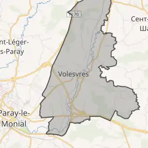 - Розташування муніципалітету Волевр на мапі Франції та сусідні муніципалітети