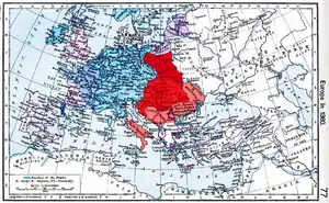 | Східна Європа у 1370-80-х рр., показано похід Людовіка. Карта М. Темушева | |