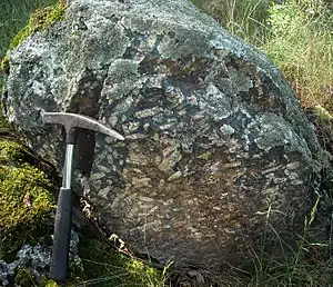![]() Класичний волиніт - плагіофіровий долерит (йотуніт), відслонення поблизу с. Пугачівка. | ||||