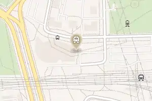 Наземний вестибюль п'ятикутної форми розташовується в ТРК «Радіус», займаючи його перший поверх. Над ескалаторами розташований вітраж, що зображає російську трійку, що атакували з усіх боків зграя вовків.