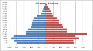 | Вікова структура | 0 — 19: 41 19 — 59: 47,7 старше 60: 11,3 (2008) | |