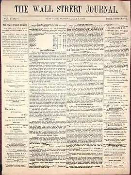 Агенція новин Dow Jones & Company, видавник The Wall Street Journal, була заснована у 1882 році репортерами Чарльзом Доу, Едвардом Джонсом і Чарльзом Бергстресором. Джонс перетворив дрібне Customers' Afternoon Letter в «Волл-стріт джорнел» у 1889 році і почав поширювати повідомлення Інформаційної служби Доу-Джонс телеграфом. The Wall Street Journal друкував «Average», перший з кількох індексів цін акцій і облігацій на Нью-йоркській фондовій біржі. Журналіст Кларенс Беррон купив контрольний пакет акцій компанії за 130 000 $ в 1902 році; наклад тоді становив приблизно 7 000 примірників, але піднявся на 50 000 до кінця 1920-х. Беррону і його попередникам завдячують створення атмосфери безстрашної, незалежної фінансової звітності — новинки в перші роки ділової журналістики.