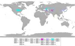 Значна частина Центральної Азії, Північно-західного Китаю і Південної Монголії мають температурний режим, близький до вологого континентального клімату, однак внаслідок значно меншої кількості опадів, їхній клімат класифікується як клімат степів (BSk) або пустель (BWk).