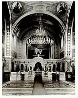 Роботи по убранню храму почалися тільки напередодні святкування 900-річчя Хрещення Русі. Розписати і прикрасити грандіозний собор до знаменної дати не вдалося, тому 13 червня 1888 року до дня пам'яті рівноапостольного київського князя Володимира був освячений тільки Нижній храм в честь Різдва Пресвятої Богородиці, в якому був встановлений дерев'яний різьблений іконостас. У 1888 році почалися роботи по облаштуванню інтер'єру Верхнього храму, керівництво яким було доручено архітекторові Н. Чагину.
