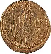Володимир Святославич першим з київських князів почав карбувати власні монети. Златник важив 4,2 грама і за вартістю був рівним візантійській номізмі та арабському динару. Це була високохудожня монета з гербом-тризубом, портретом князя і словесною легендою на аверсі. На зворотному боці (реверсі) зобразили Христа Спасителя. Такими ж були і ранні срібники з легендою «Володимир на столі — а се його срібло». Пізніші срібники на звороті замість зображення Христа Спасителя мали тільки тризуб.