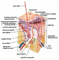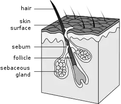 До інших компонентів волосяного фолікула відносяться сальні (їх зазвичай 2-3) і потові залози, що виділяють секрет, який утворює на поверхні шкіри захисний гідроліпідний шар.