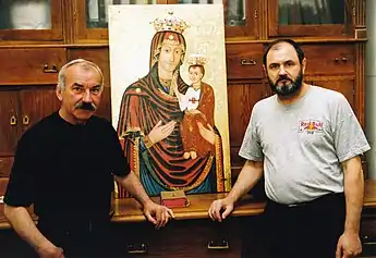 Ярослав Мовчан та Станіслав Вольський поруч з реставрованою ними Теребовлянською іконою