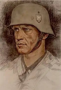 У 1939 році попросив відправити себе на фронт як фронтового художника, побував у Польщі, Франції, Норвегії, Фінляндії та СРСР. За цей час він зробив багато портретів військових командирів. Пізніше він пише багато портретів кавалерів Лицарського хреста Залізного хреста. В кінці 1943 року повертається в Берлін, де продовжує роботу.