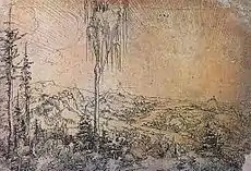 Особливе місце займають пейзажні малюнки, зроблені переважно пір'ям. Темою були динамічні композиції — спершу досить топографічно-точні, пізніше все більш узагальнені, що передають світ природи як живе ціле. В них з часом посилюються риси маньєризму, насамперед в «самомилування» віртуозними розчерками або в таких химерних деталях, як сплощений сонячний диск.