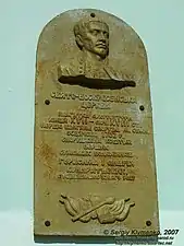 Пам'ятний знак «Сумка» перед церквою на Вознесенській вулиці