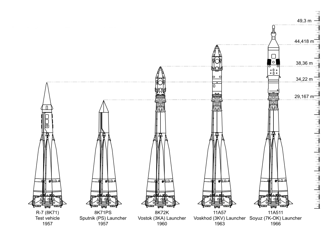 Триступенева РН «Восток» — перший носій пілотованих космічних кораблів. Її створили в ОКБ-1 в 1959—1960 рр. на базі двоступеневої міжконтинентальної балістичної ракети Р-7 (8К71 Супутник) із додаванням 3-го ступеня від РН 8К72 (яка запускала до Місяця перші автоматичні станції). Виявилося, що ця ракета (з деякими доробками) здатна вивести на орбіту КК масою до 4,5 тонн.