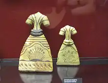 Вотивні предмети, що копіюють реальні побутові речі, лише в зменшеному масштабі (наприклад, «іграшкові» кинджали та мечі), іноді опинялися у могили, щоб супроводжувати померлих.