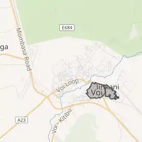 Місто розташоване на західному краю пустелі Тару, на південь і захід від національного парку Східний Цаво, у місці перетину залізниці, яка з'єднує Найробі і Момбасу, й гілки, що йде на південь, у Танзанію. Пагорби Сагала знаходяться на південь від міста.