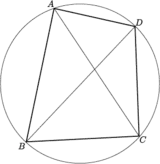 Ще одна характеристика полягає в тому, що опуклий чотирикутник ABCD є вписаним тоді і лише тоді[9], коли
