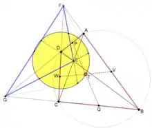 - Якщо прямі на яких лежать протилежні сторони вписаного чотирикутника перетинаються в точках E та F, то внутрішні бісектриси кутів на E і F — перпендикулярні[11].