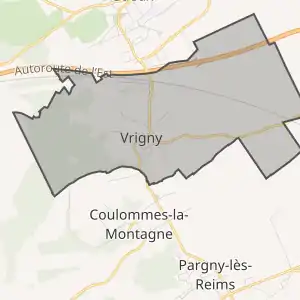 - Розташування муніципалітету Вриньї на мапі Франції та сусідні муніципалітети
