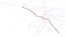 | Пільчице - Льотніча - Парк Західний - Квіська - Легніцька - Малопаневська - Західна - Легніцька - майдан Стрегомський - Юних Техників - майдан Іоана Павла ІІ - Руська - Ринок - Казімежа - майдан Домініканський - Управління Воєводства - міст Грунвальдзький - майдан Грунвальдзький - Буйвіда - Кочановського - Шопена - Стадіон Олімпійський - Міцкевіча - 9 Травня - Годебського - Сенпольно |