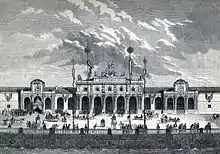 Фасад і головний під'їзд Всеросійської мануфактурної виставки. Санкт-Петербург, 1870 рік.