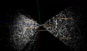 На наведеному малюнку можна бачити, що галактики розташовано в просторі неоднорідно на малих масштабах. Після детальнішого розгляду виявляється, що просторова структура розподілу галактик — чарункова: вузькі стінки з шириною, яка визначається величиною скупчень і надскупчень галактик, а всередині них — порожнини, так звані войди[4].