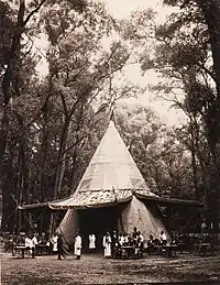 На лузі було обладнано «міжнародна село» з типовими селянськими оселями різних народів. Зокрема, був експонований житловий будинок родини з Галичини[6]