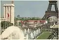 Trocadéro mit deutschem Pavillon (links), belgischem Pavillon (rot) und Eiffelturm