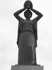 Виникнення давньогрецького театру пов'язане зі святами на честь бога виноградарства Діоніса — Діонісіями. Учасники процесій зображали пошт Діоніса і, надягаючи козячі шкури, співали і танцювали (слово «трагедія» в перекладі з грецької — «гімн цапів»). На історичне походження театру вказує обов'язкова участь у трагедіях хору, з яким спочатку вступав в діалоги єдиний актор, пізніше кількість акторів збільшилася до трьох. Сполучившись із літературною традицією, театр в класичну епоху з релігійних, народних уявлень перетворився на самостійний вид мистецтва. Театралізовані вистави стали невід'ємною частиною державних свят — Діонісій та Леней. Для них будували грандіозні кам'яні театри, розраховані на тисячі глядачів (театр Діоніса в Афінах, найкраще за інші зберігся амфітеатр в Епідаврі).