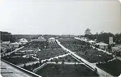 Олександрівський притулок для калік і старих воїнів російсько-турецької війни з'явився біля села Всехсвятського в 1878 році. Його назвали Олександрівським на честь імператора Олександра II.[1] Розташовувався притулок ліворуч від Петербурзького шосе біля Малого Всехсвятського гаю. Будували за рахунок пожертвувань різних благодійних організацій і приватних осіб. Біля притулку побудували храм Олександра Невського і заклали парк.[1] До 1898 року в Олександрівському притулку було 15 будинків для нижніх чинів,[1] будинок управління, господарський будинок,[1] лазаретний будинок, аптека з амбулаторією, лазня, будинок для приміщення причту та пральня. Тут могло проживати понад 100 осіб.[1]