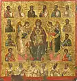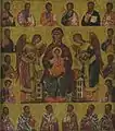 Чудотворна ікона Богородиці "Пантанасса" (Всецариця) з архангелами Михаїлом та Гавриїлом, 12 апостолами та вибраними святими (1500, Музей ікон, Німеччина)