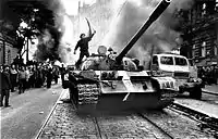 ![]() Атака чехами радянського танка із застосуванням коктейлів Молотова Атака чехами радянського танка із застосуванням коктейлів Молотова | |||||||||||