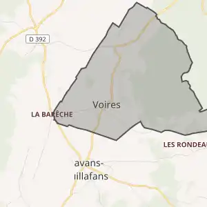 - Розташування муніципалітету Вуар на мапі Франції та сусідні муніципалітети