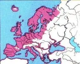 ![]() Розповсюдження вугра у Європі | ||||||||||||||||||||||||||||