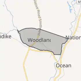 Вудленд розташований за координатами 39°36′29″ пн. ш. 78°56′59″ зх. д. (39.608147, -78.949806)[2]. За даними Бюро перепису населення США в 2010 році переписна місцевість мала площу 0,47 км², уся площа — суходіл.