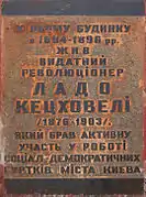 Меморіальна дошка Ладо Кецховелі, грузинському революціонеру (буд. № 25)