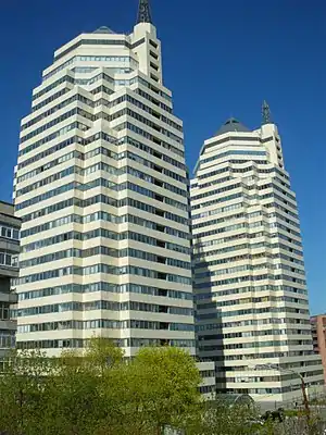 - № 35б — два 30-поверхові хмарочоси «Башти»; елітний жк збудований у 1999 (західна вежа) й 2005 (східна) роках; висота 126 метрів, архітектор Олександр Дольник;