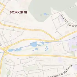 | Зупинки громадського транспорту | «Вулиця Володимира Брожка», «Фрометівський узвіз», «Вулиця Монтажників», «Совські ставки», «Куп'янська вулиця» |