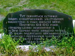 Пам'яний камінь жертвам концтабору, який розташовувався на території вулиці |