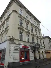№ 17. Кам'яниця на розі із вулицею Братів Рогатинців. Збудована за проєктом Максиміліана фон Круса на місці двох старіших кам'яниць — Домагалича і Мораковського. Остання примикала до міського муру, котрий знаходився на місці вулиці Братів Рогатинців (щойнопрокладена отримала спочатку назву «Нова вулиця»). 1881 року за проєктом Яна Шульца реконструйовано міжповерхові перекриття і дах. 1896 року реконструйовано сходову клітку (архітектор Володимир Підгородецький). У 1935 та 1936 роках переобладнано вітрини (архітектори І. Менке, С. Кайль).