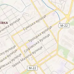 ![]() Вулиця Горького після перетину з Сумською вулицею в сторону вулиці Троїцької Вулиця Горького після перетину з Сумською вулицею в сторону вулиці Троїцької | |