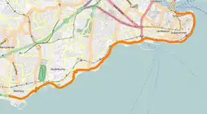 Велика частина вулиці Кеннеді пролягає вздовж Константинопольських стін по берегу Мармурового моря. Починається від станції Сіркеджі вулиця прямує на схід по південному берегу затоки Золотий Ріг у напрямку до місця впадання Босфора в Мармурове море. На мисі Сарайбурну вулиця повертає на південь і прямує по його східній стороні, між Босфором і палацом Топкапи. Після маяка Ахиркапи і палацу Буколеон, дорога повертає на захід у напрямку до західного Стамбулу і аеропорту Ататюрк, проходячи поруч з Церквою Святих Сергія і Вакха, Константинопольським патріархатом Вірменської апостольської церкви і великою пристанню в районі Єнікапи. Формально вулиця Кеннеді закінчується в районі пристані Атакей, переходячи у вулицю Рауф Орбая, що далі прямує до аеропорту.