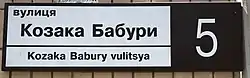 ![]() Нові вказівники на вулиці Козака Бабури, липень 2017 Нові вказівники на вулиці Козака Бабури, липень 2017 | |