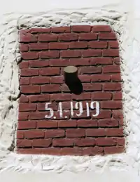 Залишки снаряду, який влучив у стіну церкви під час польсько-українсько війни 1918—1919 років