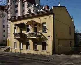 № 15. Кам'яниця, збудована у 1911 р. за проектом архітекторів Генрика Заремби та Юліана Пінкерфельда. Скульптор Тадеуш Блотницький оздобив її п'ятьма алегоричними барельєфами, що являють собою етапи розвитку еволюції людства: «Транспорт» (залізничник, водій, пілот), «Праця і мистецтво», «Давні цивілізації» (Єгипет, Греція, Римська імперія), «Прометей», «Музи». Первинний задум передбачав складний програмний цикл рельєфів роботи скульптора Зигмунта Курчинського, але, на жаль, нереалізований. Проект експонувався на львівській архітектурній виставці у 1910 р.[4]