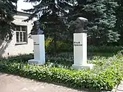 Погруддя українських радянських політичних діячів Ю. Коцюбинського та В. Примакова на території музею Михайла Коцюбинського
